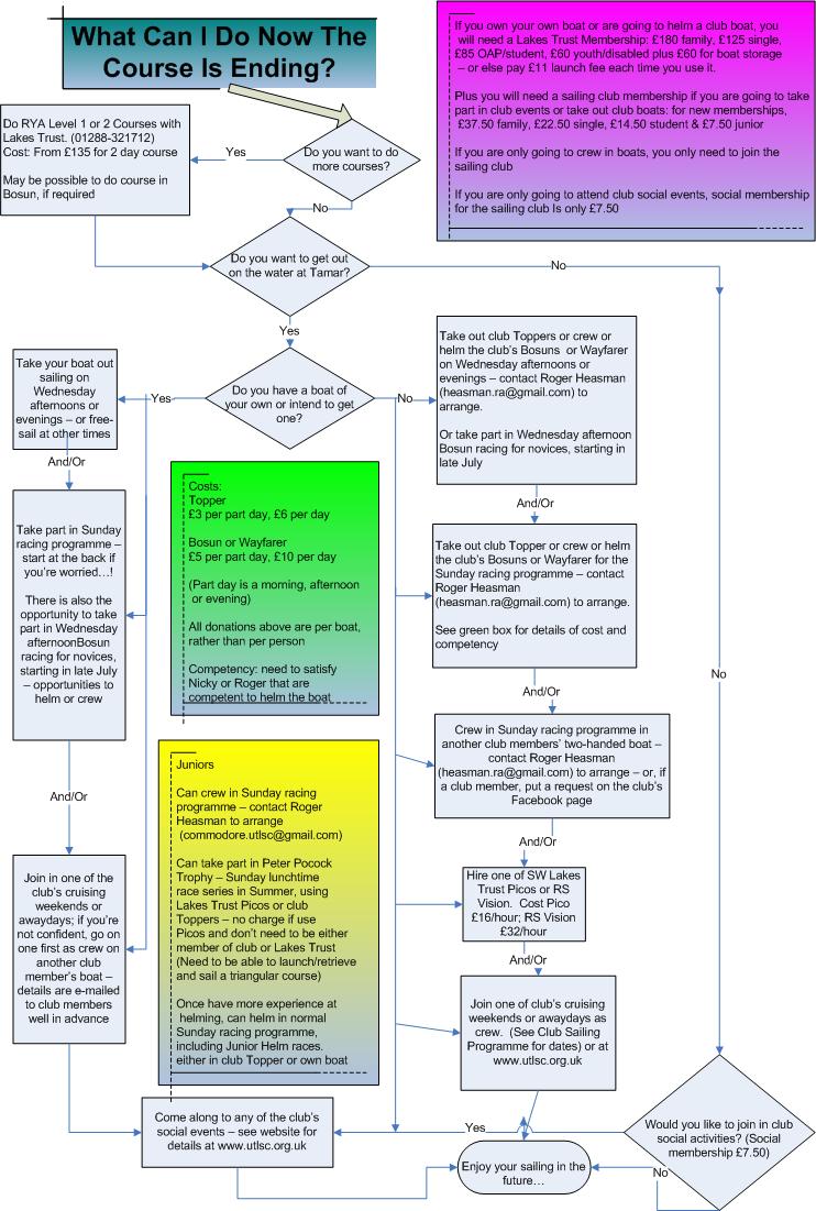 As an overview, there's a 'Which' magazine style decision tree that may make the various options clearer; it was originally designed for people who had come on one of the club's introductory sailing courses, but it's broadly applicable to any new club member who is thinking of joining the club: