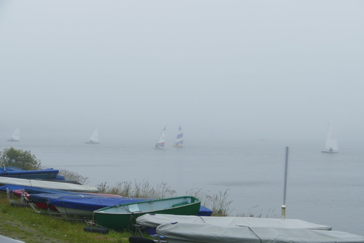 suddenly got up to a gusty westerly, but a handful of hardy sailors persisted