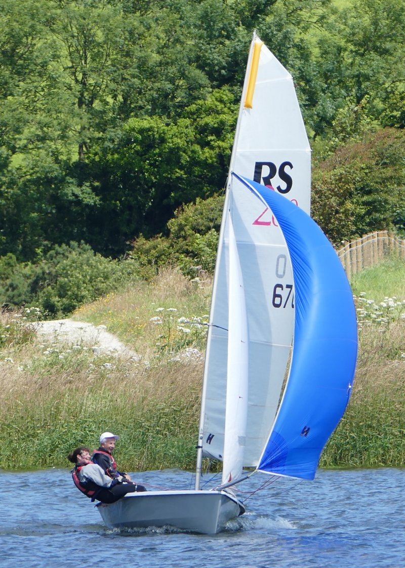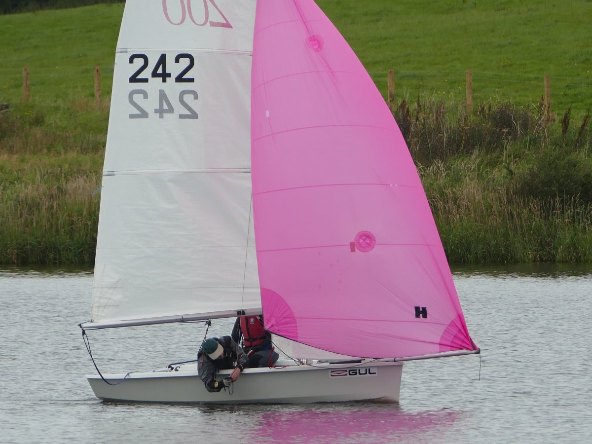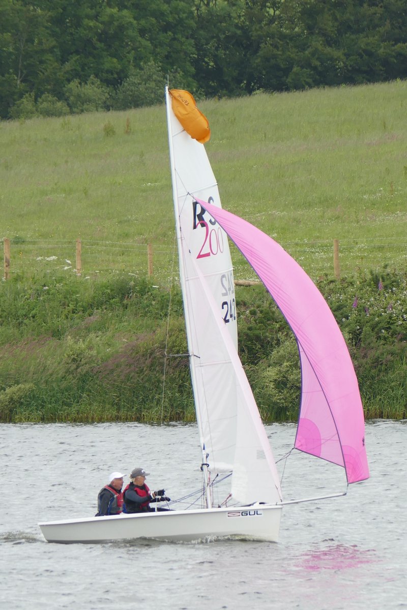 Chadney already has the RS 200's pink asymmetric spinnaker pulling, but