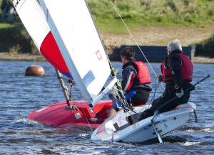 Elliot Pomeroy to windward of Vicki Duncalf on