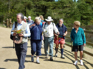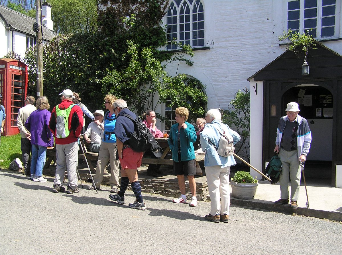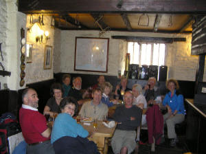 Eventually, we arrived at the end of the woodland trails at Scrub Tor and were then faced by a mile's walk along a road to reach the lunch stop at The Royal Inn at Horsebridge; fortunately the road was extremely quiet and we arrived at the pub, where we found tables reserved for us. The food was excellent and the welcome warm (based on our experience, it can be thoroughly recommended) and it provided a reviving interlude to prepare everybody for the long climbs and descents on the way back. After retracing our steps on the road, we took a different route back to the start point, this time hugging the river slopes, with views through the trees of the noisy River Tamar far below. We eventually made it back to base and collapsed into the cafe again before going our separate ways: all-in-all a good day out blessed with stunning sunshine, though there were a few grumbles about stiff legs the next day....