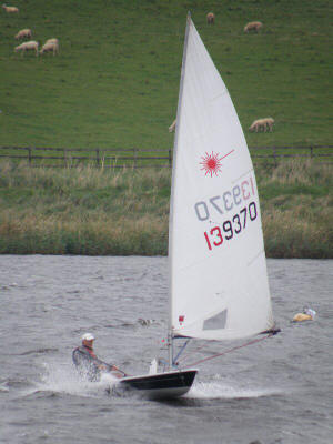 After the cancellation of sailing on the scrub-up weekend (see below), the weather went to the other extreme and was forecast to be almost flat calm. In the event, there was slightly more than forecast, with the odd short spell when it blew quite respectably - but with the gusts coming and going and the wind varying in direction, it was a question of being in the right place at the right time. At least Tamar Lake avoided the fog, which blanketed several places in the vicinity. It was good to see ten boats out on the water for the morning race, though, including John Weller out for the first time in a new Laser and Adam Hilton taking his Solo out for a spin. Many thanks to Mandy and Brian Pollard for the photos.