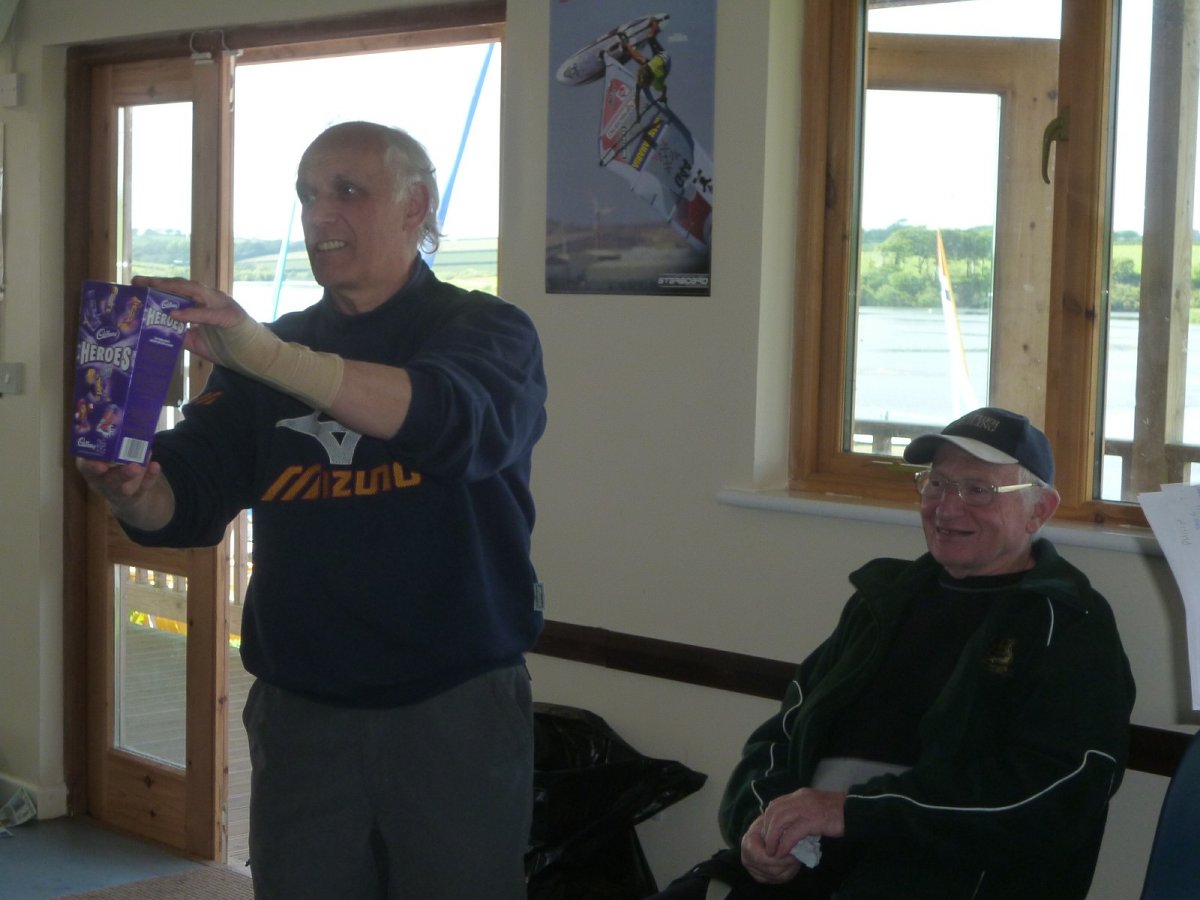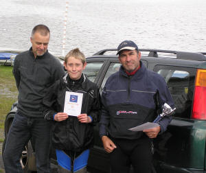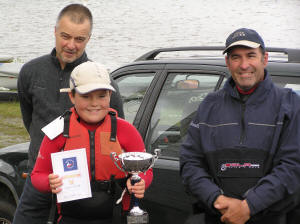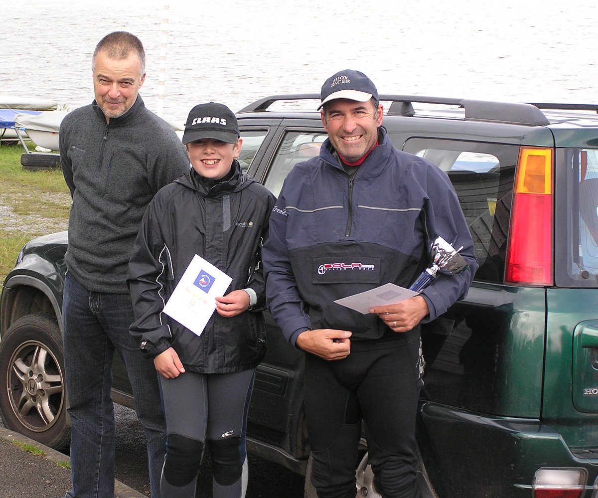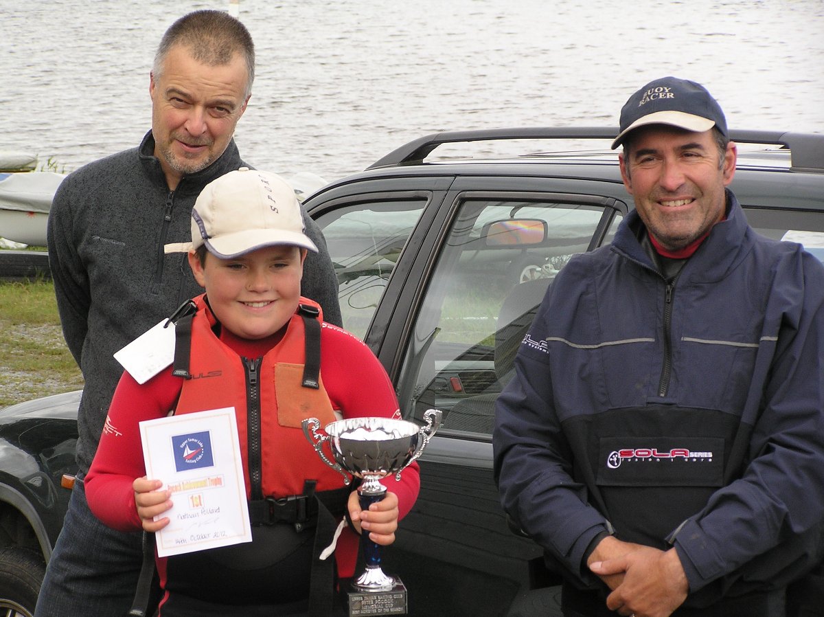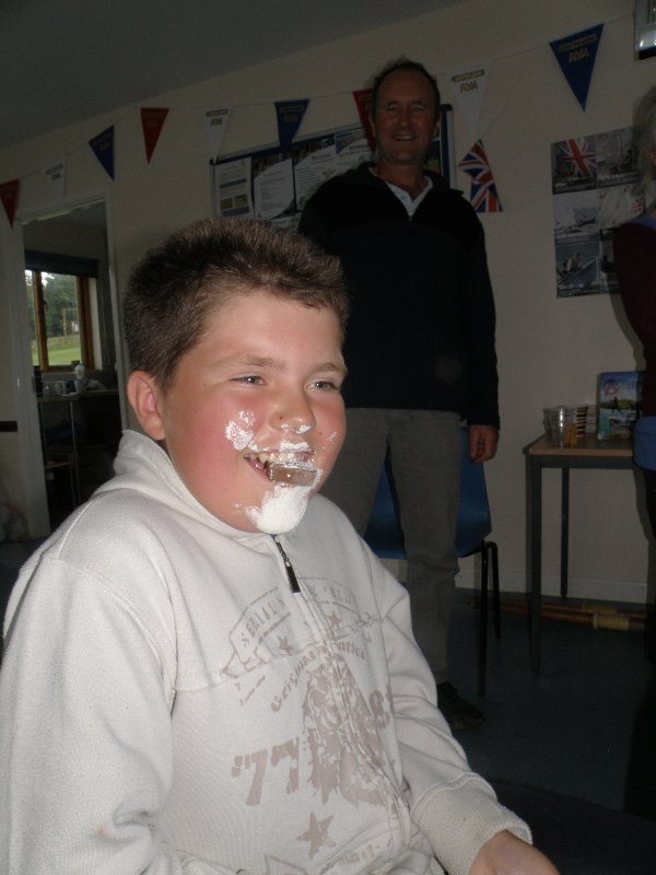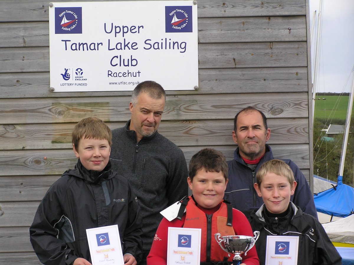 The awards for the annual Peter Pocock Trophy were this year presented at lunchtime on October 14th; the race series is held on Sunday lunchtimes for novice junior sailors and a trophy is awarded for the winner, in memory of Peter Pocock, a former club member. This year the winner of the trophy was Nathan Pollard, following in the footsteps of his brother James, who won the trophy two years ago, with Elliot Pomeroy in second place and Alex Clifton in third. In front of a large crowd, Simon Veal congratulated all the participants before the trophy was awarded to Nathan by Mark Pocock, Peter's son, with certificates for all the entrants for their endeavours.