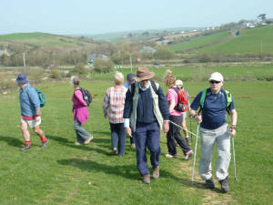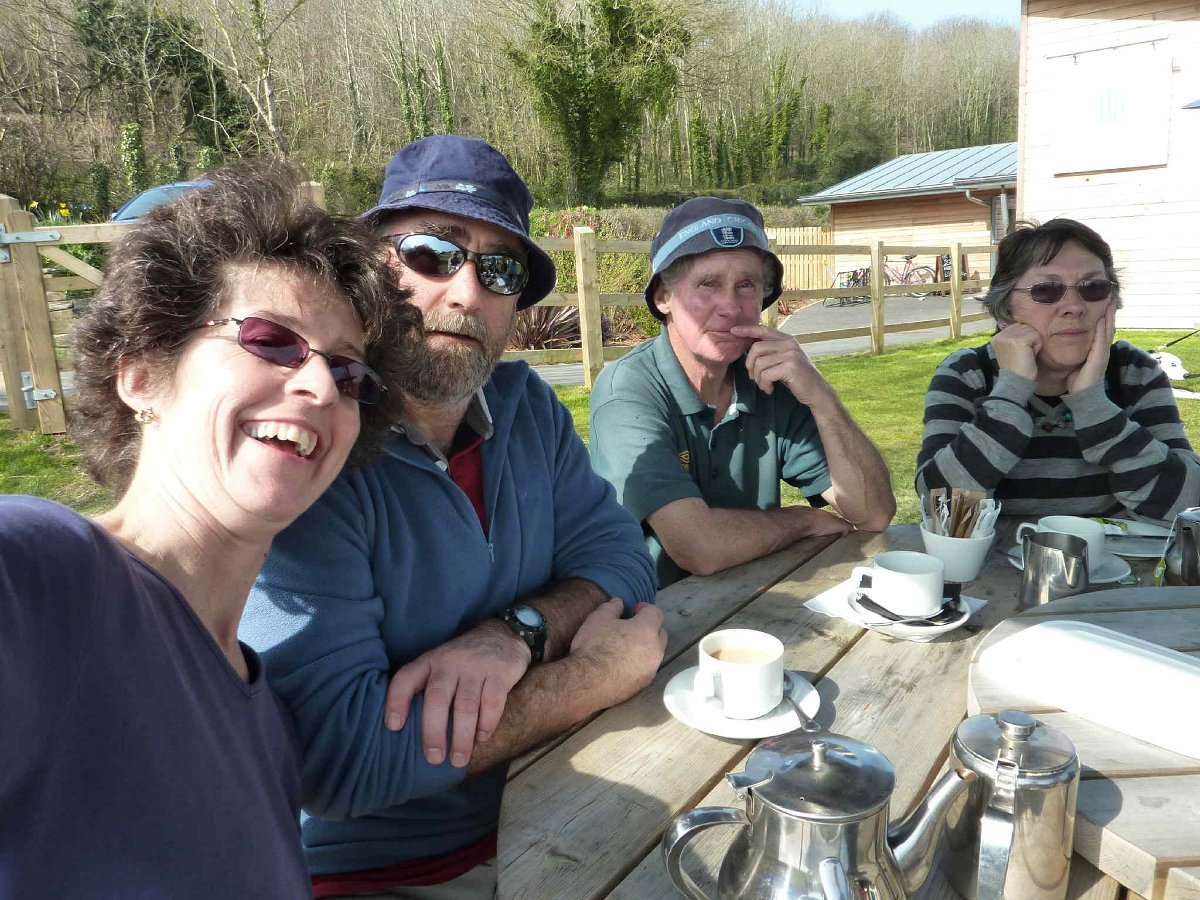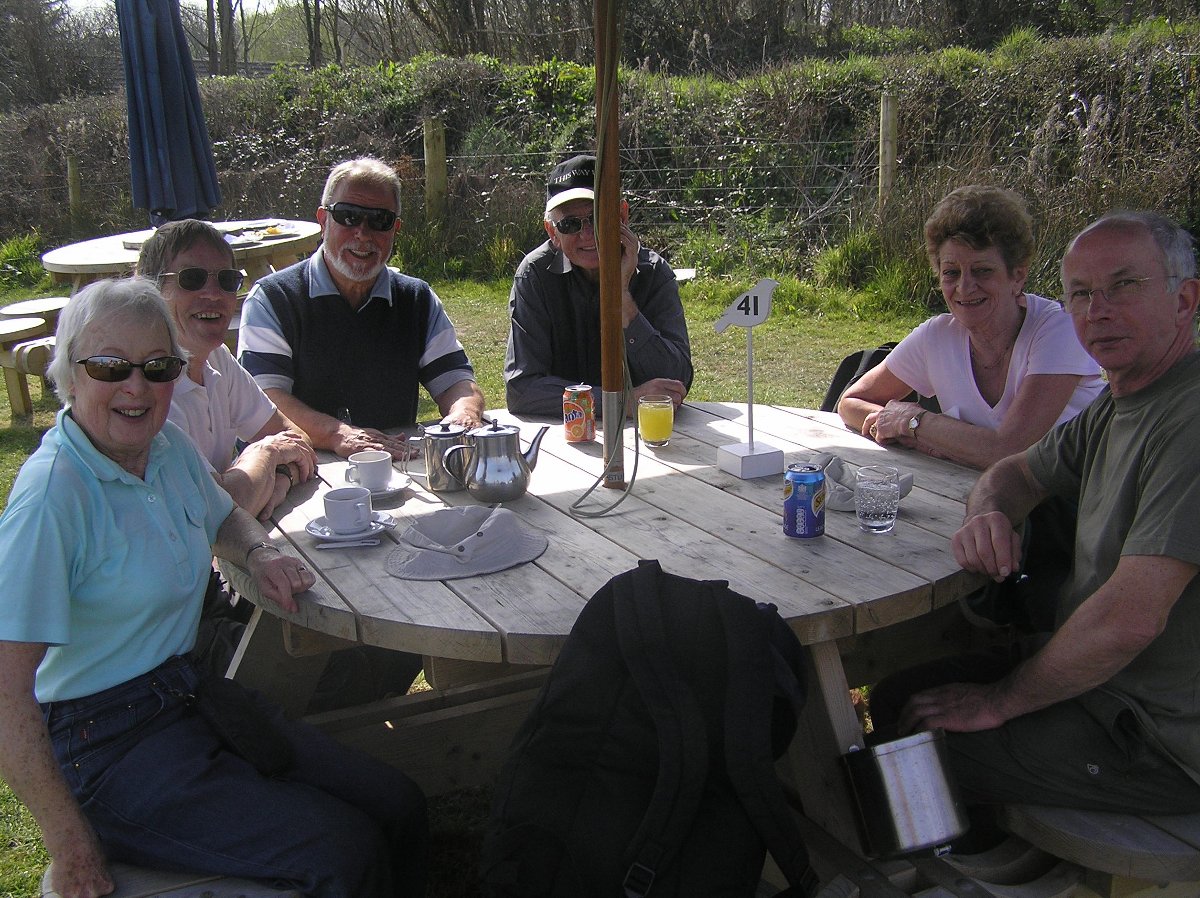 Bob Sampson opted to go for home territory for the first walk of the 2012 social programme, which attracted a good-sized crowd, no doubt allured in part by the un-seasonly bright and hot sunshine - stunning for March..... Starting from the Rugby Club, the group headed off along the Bude Canal and the first stop at 'The Weir' cafe at Marhamchurch, which was a surprisingly upmarket venue to be found out in the rural hinterland - and produced excellent coffee, cakes and drinks. Bob then directed us across the fields on the second segment of the itinerary, ending up at the 'The Bay View Inn', where the staff managed to serve lunch for everyone in a remarkably speedy fashion, given how crowded it was. The final third was a walk back towards Bude, the surf sparkling in the sunshine, before dropping down through Whalesborough Woods to rejoin the canal and a final resting spot at 'The Olive Tree', adjacent to the canal basin. Many thanks to Bob Sampson for organising the route, so well provided with splendid spots to rest the legs. The pictures below show a few of the happy crowd (many thanks to Sheba and Nicky for taking them).