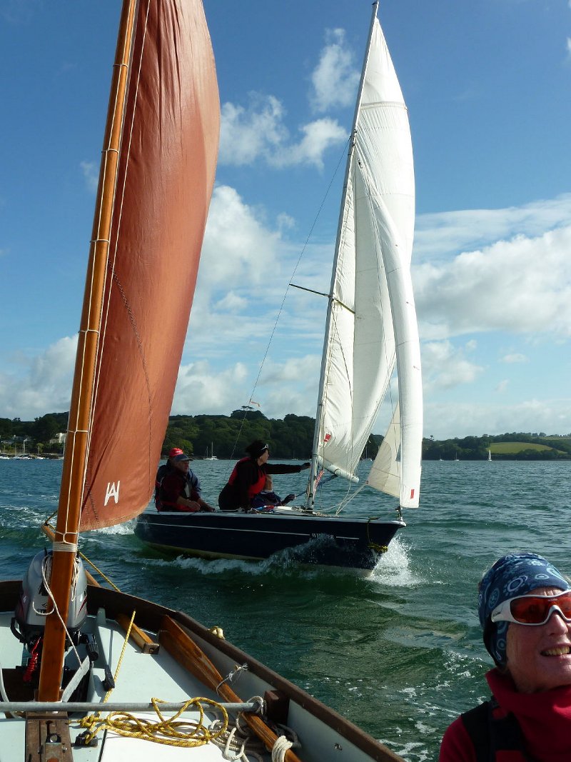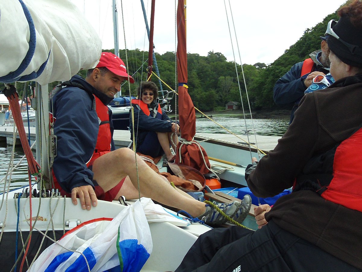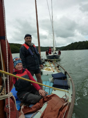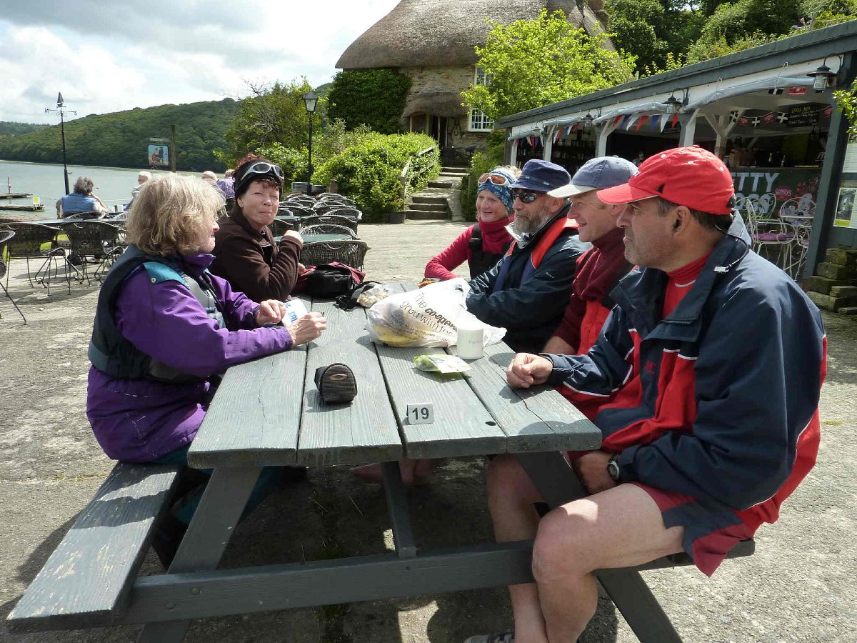 We were programmed to camp at Cosawes camp site on the Friday night for a start on the water on Saturday morning. Unfortunately the weather forecast gave strong winds and heavy rain for Saturday so a decision was taken to postpone the start to the Sunday. Some members still camped on the Friday evening and then spent the day in and around Falmouth, soaking up the atmosphere and making important purchases from the town's chandlery. You can never have too many nautical items! The whole group met up at the camp site on Saturday evening and we had a lovely dinner in the local pub. The beer and wine went down quite well too!