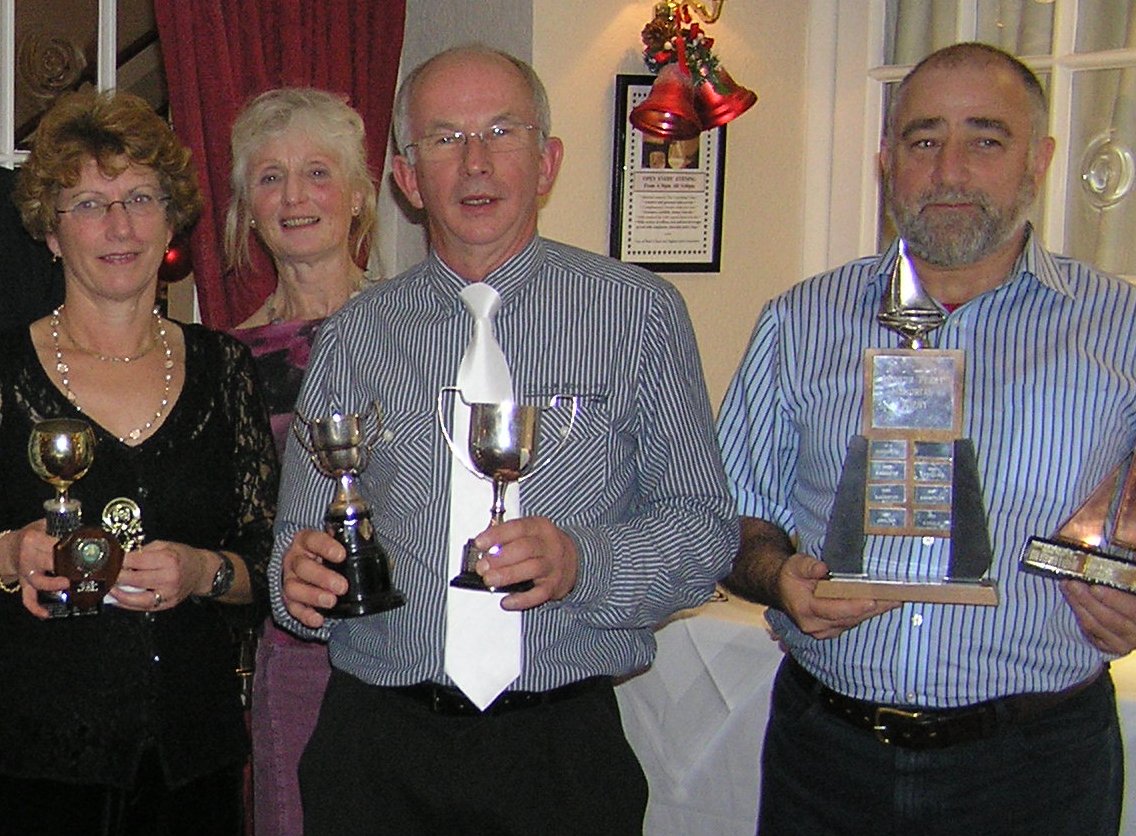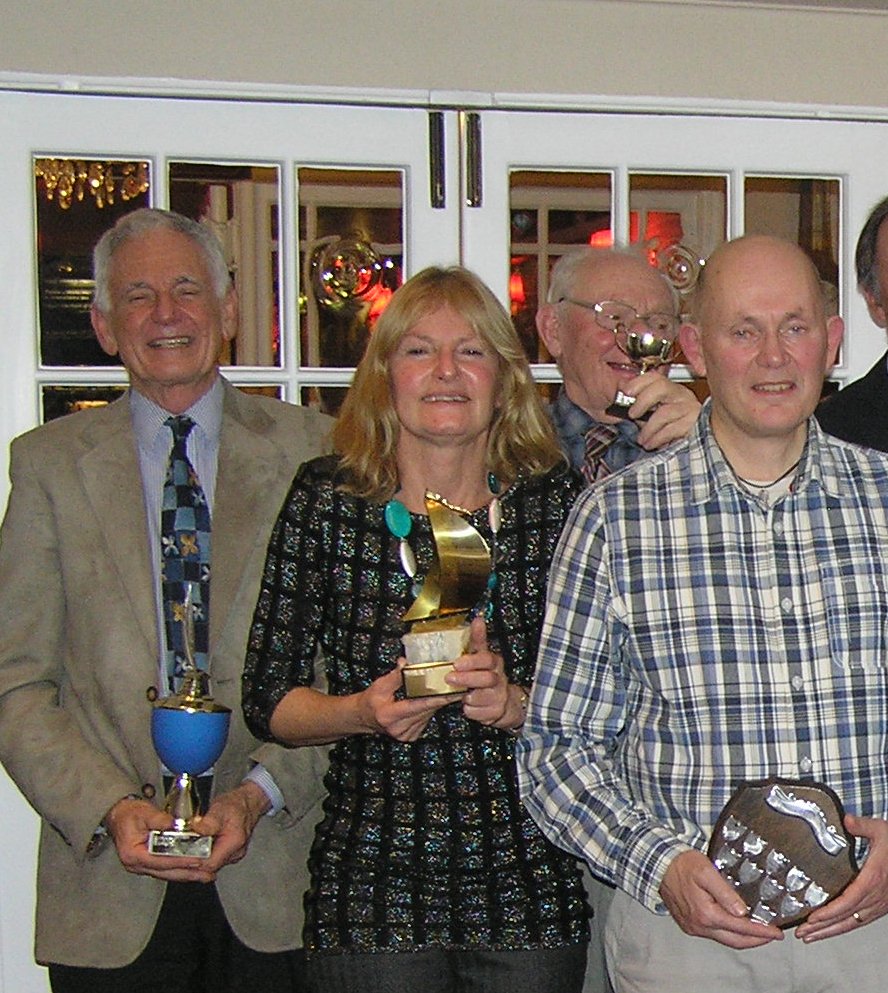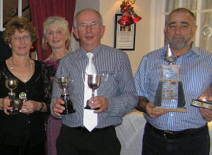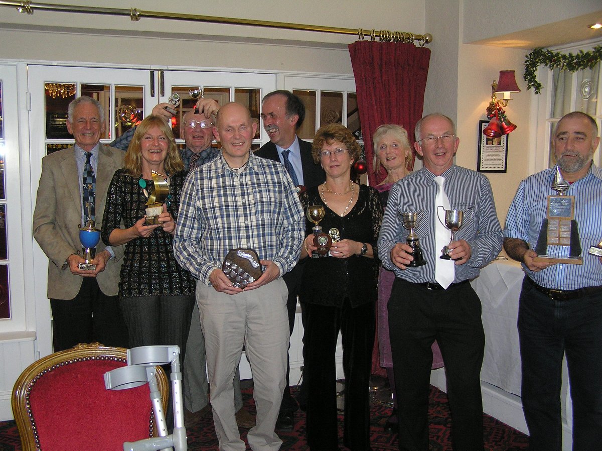 This year's club Christmas Dinner was held at the Falcon Hotel for the first time, with a good attendance. The Falcon proved to be an excellent venue, with the entire restaurant devoted to the sailing club. As usual, the dinner was followed by the award of prizes; the photographs below show most of the year's prizewinners, though sadly a few club members weren't able to be there to collect their prizes in person - congratulations to all the prizewinners. Thanks to Nicky Buckett for the photographs.