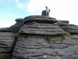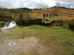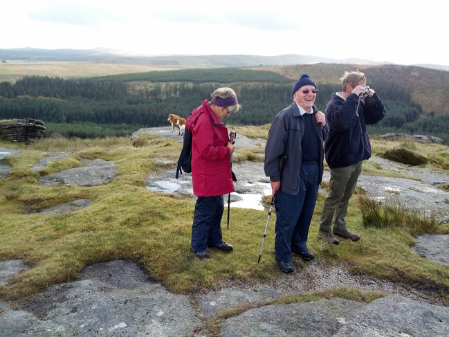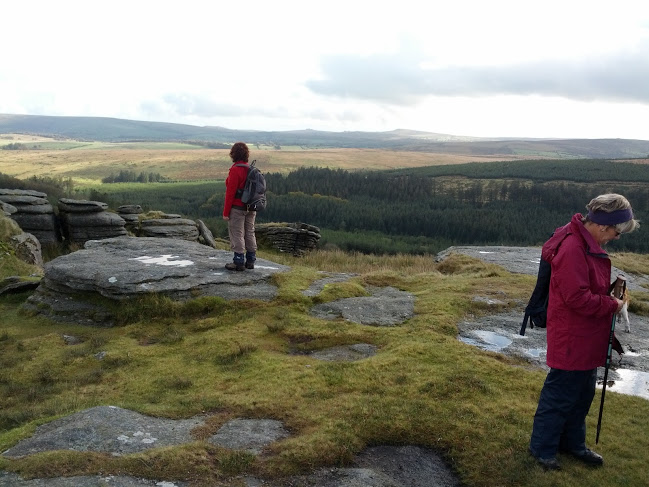 In a year of seemingly near-incessant rain, the club was amazingly fortunate that the traditional Autumn Dartmoor walk was favoured with surprisingly good weather. However, the heavy rain of the previous days (and weeks) meant that the moor was extremely wet underfoot and this meant some alterations in the originally planned route. A sizeable group met in the large car park at Postbridge and then headed off, initially along the the dry gravel tracks of Bellever Forest, before turning out across the open moor and trudging uphill to the first stopping point, at Bellever Tor. After admiring the views, there was more walking across some fairly squishy moorland before finding a drier track that headed north east and eventually dropped back into the bottom end of Bellever Forest. The next stop was at the Forestry Commission picnic benches (and loos) at a picturesque spot next to the East Dart River. The boggy ground on the last leg of the walk led to an uphill detour back across the forest, albeit with some good views to the moorland tors in the distance, and eventually back to the starting point. Bob Sampson had made arrangements for the club to go into the East Dart Hotel for lunch and drinks and this made for an excellent conclusion for the walk, with the hotel staff managing to get good food out to everybody in amazingly quick time.