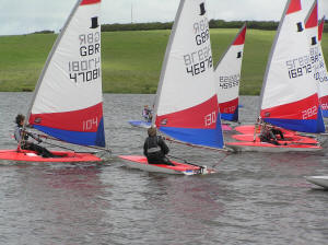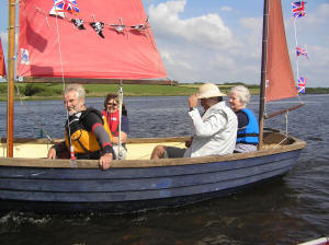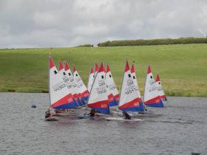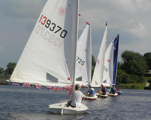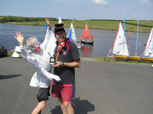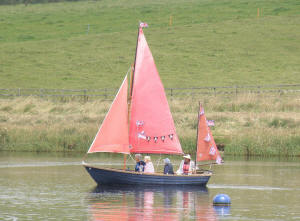 The club participated in the RYA's pre-Olympic 'Push the Boat day on Saturday 21st July, where the idea was to get as many boats as possible out of the boat park and onto the water, adorned if possible with bunting and other forms of decoration. In a summer with a pretty dismal record so far weatherwise, the day dawned with glorious sunny weather and a gentle wind, ideal conditions for an event of this type. As well as decorating their boats, many members had also donned fancy dress, turning up as pirates, explorers and what have you; Jane Chadney came dressed as the dove of peace, though many onlookers interpreted her costume as a swan. In the morning, John Duncalf kindly acted as Race Officer and organised a pursuit race for all boats on the water and this was won by Stuart Mealing in his Laser Radial, after a close tussle with Vicki Duncalf. Jane Chadney won the prize for the best dressed boat, with Vicki second and John Dabbs's Gull dinghy in third place. In the afternoon, Simon Veal organised a 'follow-my-leader' sail around the lake, with his Bosun in pole position, a fun event which incidentally also made for an excellent training exercise. The day was then rounded off with a 'bring-and-share' supper. Thanks to Simon Veal for organising the day and also for providing certificates of attendance for all boats getting out on the water, plus official 'Sail for Gold' wristbands for all taking part.