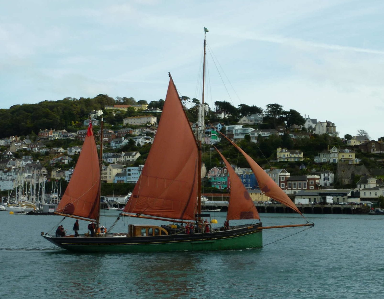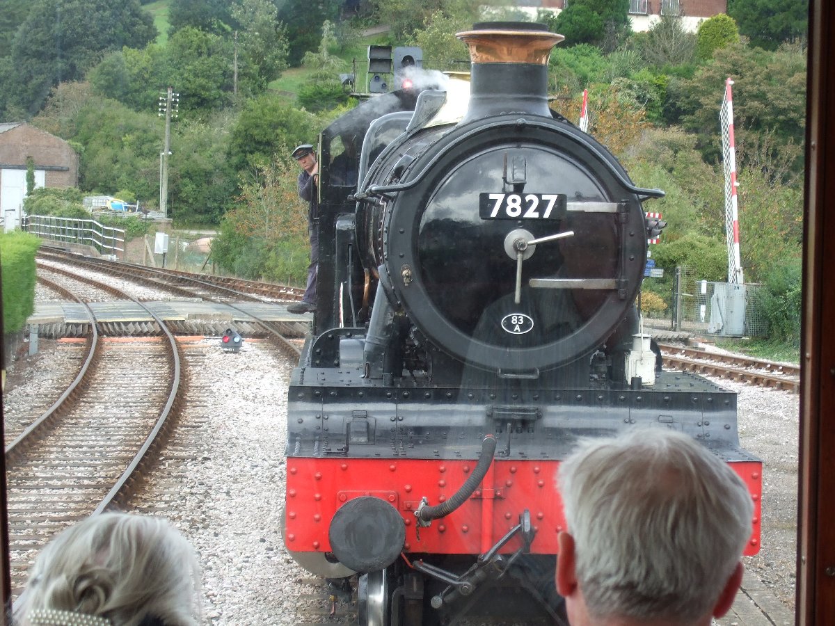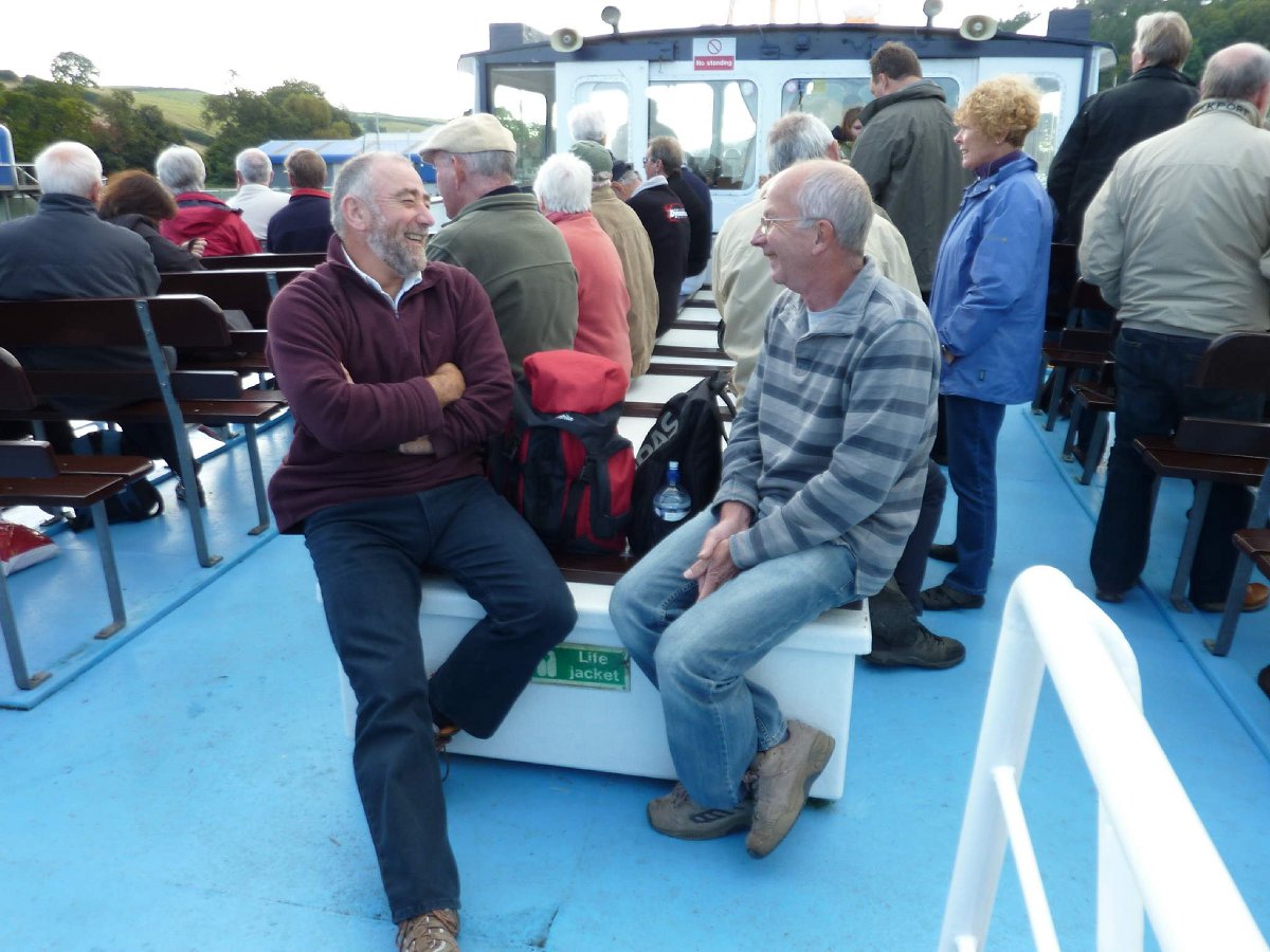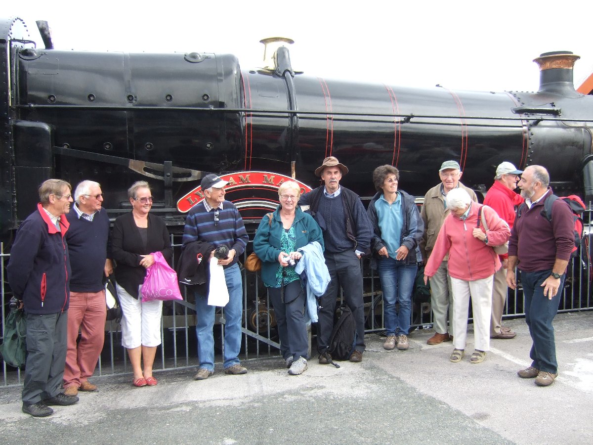 On Saturday 22nd September, a large group from the club embarked on the always-popular 'Round Robin' trip: boat trip from Totnes down to Dartmouth, steam train from Kingswear to Paignton and then bus back Totnes. Despite careful planning, the trip nearly got off to a bad start when the date turned out to coincide with a large 'wild swimming' event also starting from the Totnes waterfront. Although people had been forewarned and arrived early, all the nearby parking was already full to overflowing; most club members ended up parking far away on the west edge of the town and were faced with a long walk back to the boat, but thankfully everybody made it just in time. The boat trip was also pretty full but the weather held and it was an enjoyably gentle scenic trip downriver. For a few lucky people, the highlight was a brief glimpse of a seal. Disembarking in Dartmouth, the party went their separate ways to find lunch: reports afterwards suggested that Taylors restaurant, specialising in seafood, was probably the gourmet's choice. A quick dash for the ferry (so full that some of the group had to wait for the next one) meant that everybody made it to the station in time to see the steam engine puff round the curve, pulling an impressively large number of coaches into the platform. The locomotive was working hard on the steep climb out of Kingswear as far as Churston, before gliding down the rest of the way into Paignton, with some pretty sea views. Some of the group were corralled for a quick photo in front of the engine, and most went off to grab a coffee before reassembling for the bus ride back to the start. All-in-all, very successful day on one of the best tourist attractions in the South-West.